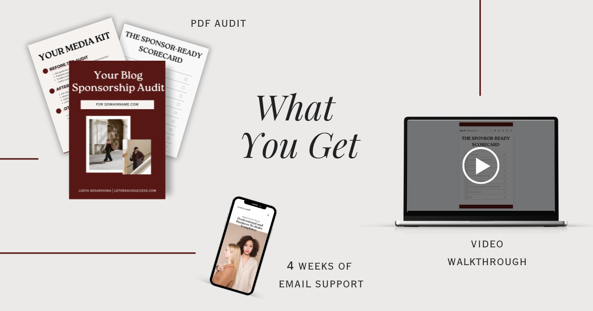 A blog sponsorship audit is a review of every element on your website + your overall monetization strategy, media kit, and brand outreach plan.