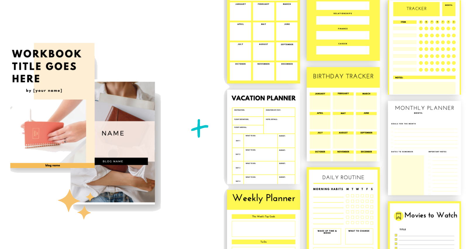 If you aren't sure what to create first, how to design it well, or what info to include, I've got you covered. You'll find 15 customizable printables (people love downloading and printing these out) and 2 workbooks (a bigger and more actionable freebie that allows the subscriber to achieve a certain result).