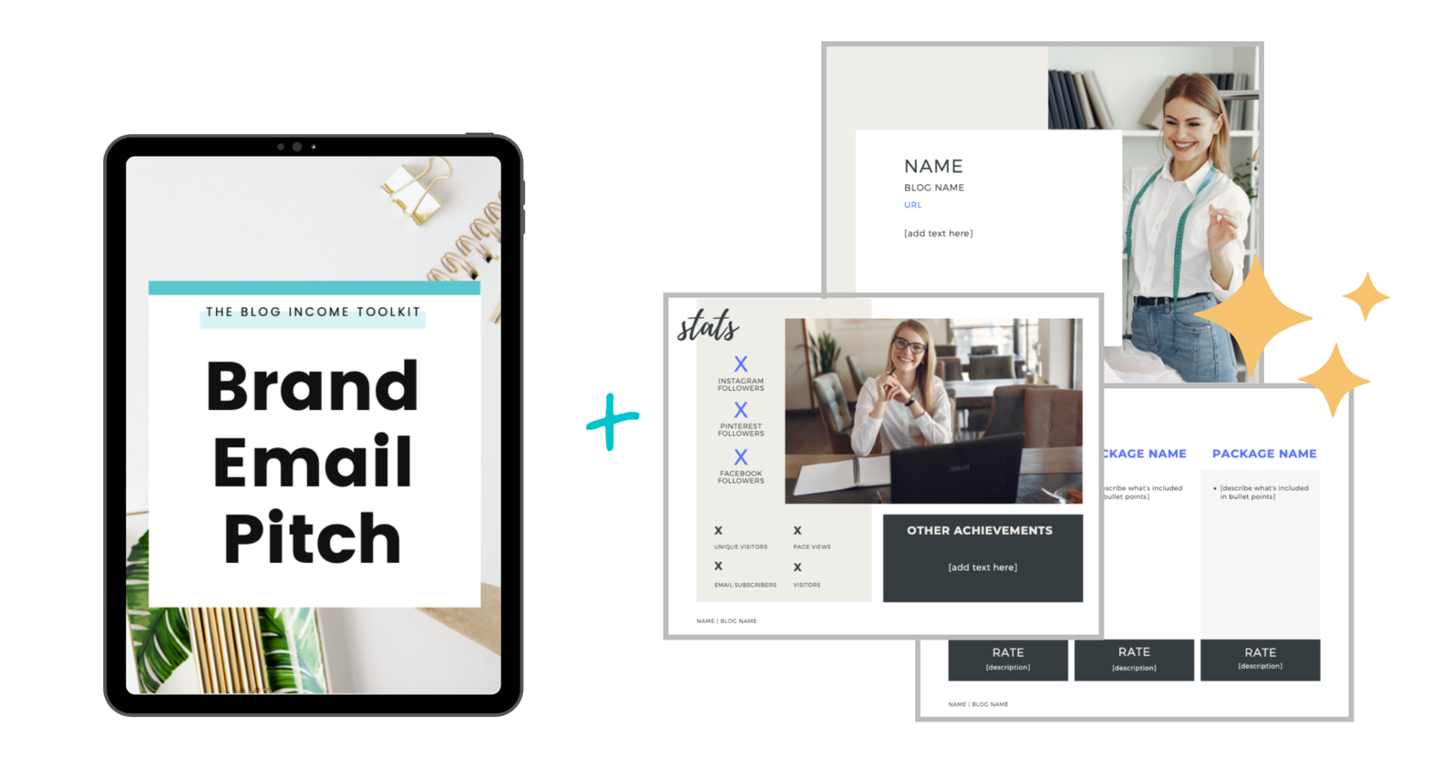 To help you with that, in the Blog Income Toolkit you'll find a media kit template that you can fill in (with info about you and your blog, your audience, packages, contact details, etc) and start sending to brands when you pitch them.