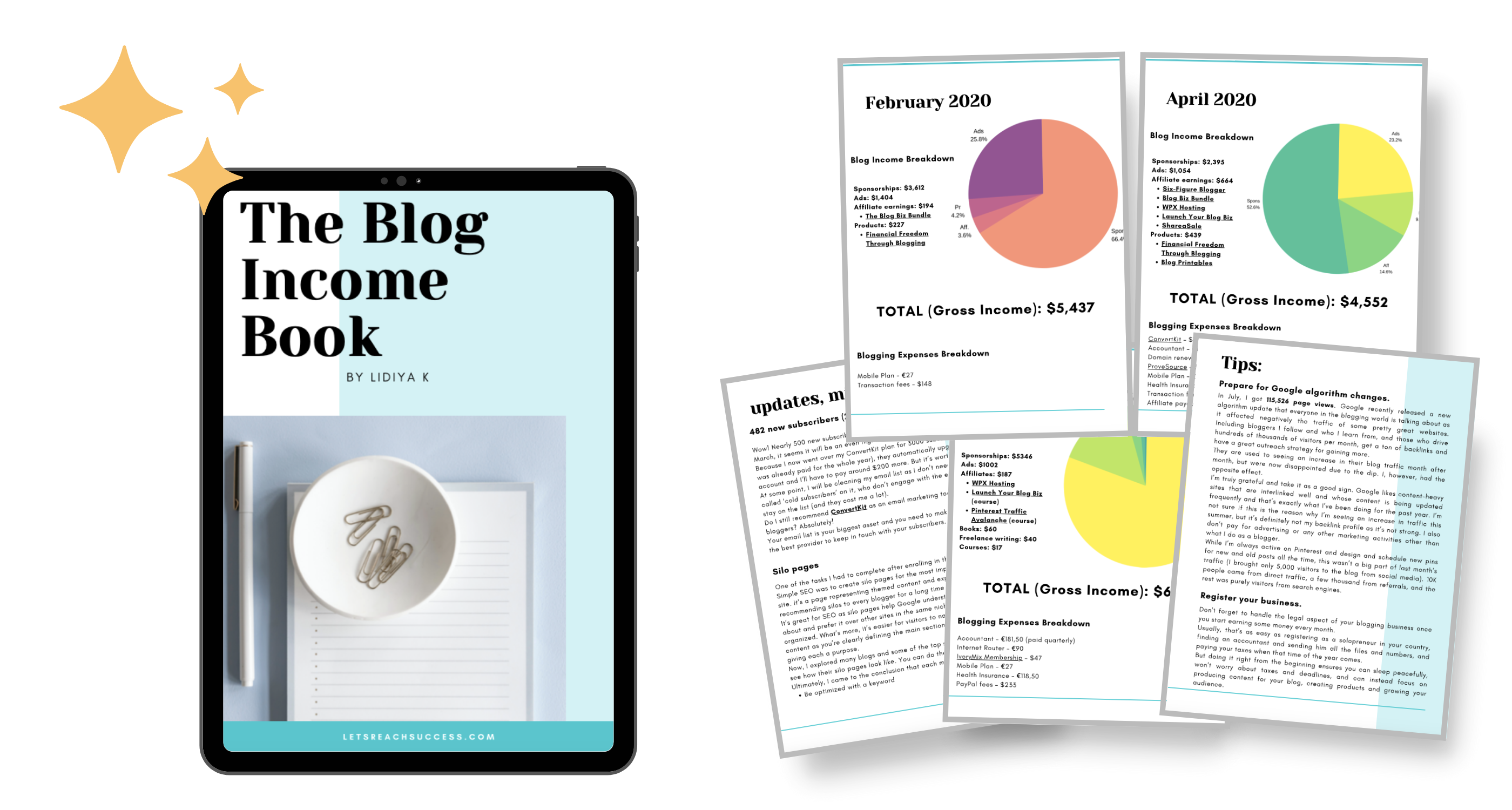 The 12 income reports inside have all the numbers (revenue + expenses) so you can see how a full-time blogger earns money in different ways, updates and milestones for each month (so you can see what I worked on, how it went, what my day-to-day blogging tasks are as well as the big projects I tackle) and tips that will help you grow and monetize your own platform.